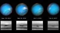 哈勃发现了两场出现在20世纪90年代中期的黑暗风暴,然后消失了。最近的这场风暴最初是在2015年出现的,但现在正在缩小。就像木星的大红斑 (GRS) 一样,风暴沿反气旋方向旋转,并从冰巨行星大气层深处挖出物质。难以捉摸的特征为天文学家提供了一个独特的机会来研究海王星的深风,而这种深风无法直接测量。
